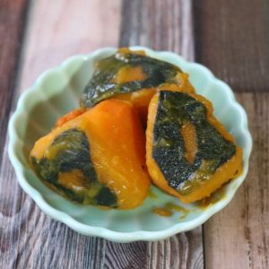 かぼちゃをバターで煮たもの。バターのコクとかぼちゃの甘さでホッと一息つける1品。
