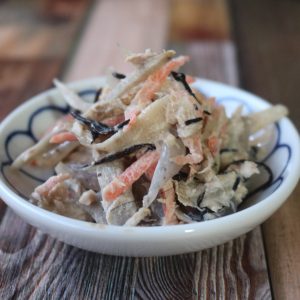 ごぼうとこんにゃくは煮物には欠かせない野菜ですが、ツナを使ってサラダにすると見た目も味わいも違う美味しさを楽しめます。