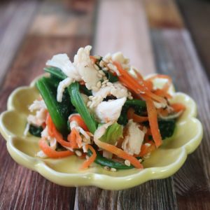 旬のほうれん草、にんじんにタンパク質が豊富なささみでナムルにしてみました。しりしり器で千切りにしたにんじん、ほうれん草、ささみはそれぞれレンチンで。