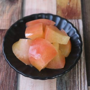 リンゴを皮ごと白ワインで煮たもの。りんごには水溶性食物繊維、ポリフェノール、整腸作用があるペクチンが豊富。