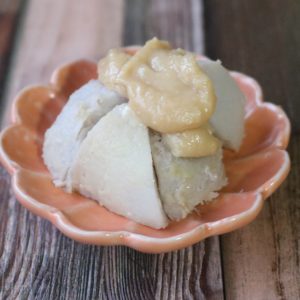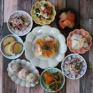 里芋を酒粕と味噌で和えたもの。酒粕には食物繊維、肌のきれいをサポートするビタミンB群、冷え性予防の効果があるそう。