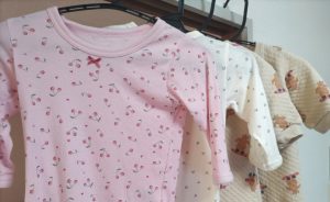 離乳食やミルクなどの汚れで日に何度か着替える双子の衣類。