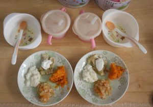 私は双子の離乳食作り、遊びあいて、寝かしつけを担当しました。長女からレトルトの離乳食を持たせてくれたのですが、昔を思い出しながら手作りしました。