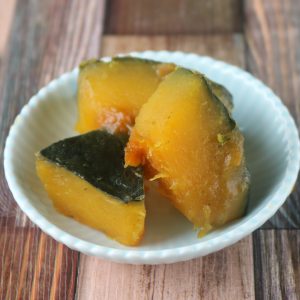 かぼちゃを蒸してみりんと砂糖で味付けしたもの。ホクホクしたカボチャの甘さが美味しかったです。