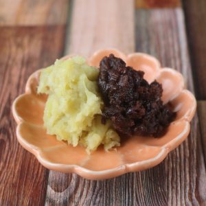マッシュにしたさつまいもと手作りの小豆を一緒にしたもの。小豆は甘さを控えて作ってあるのでさつまいもの自然な甘さと小豆の食感が楽しめます。