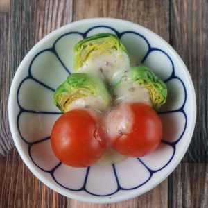 3.芽キャベツとミニトマトの粒マスタードマヨ