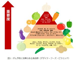 1990年代にアメリカ国立がんセンターががん予防に効果のある食品をピックアップしてピラミッド型に作成しました。それがデザイナーフーズ・ピラミッドです。