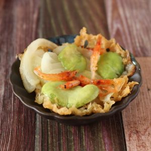 あんかけの汁に桜えびを入れると柔らかく食べやすくなります。