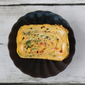 卵焼きに桜えびを入れると断面が卵の黄色と桜えびの赤色で目を引く卵焼きに。