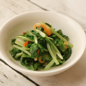 桜えびは水分の多い酢の物、中華和え、みぞれ和えにすると髭や固さを気にせずに食べられます。