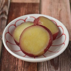さつまいもをワインで煮たもの。さつまいもの甘みで十分美味しいですが、さつまいもによっては甘みが不十分な時ははちみつや砂糖を少し加えてみるとよいでしょう。
