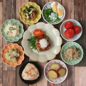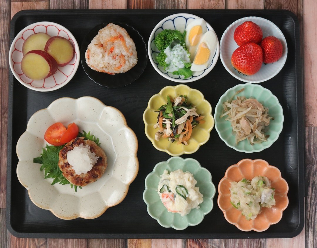 市販品のポテトサラダが残っていたので食べ切るために副菜の1つに。